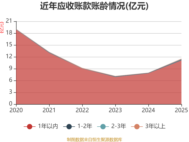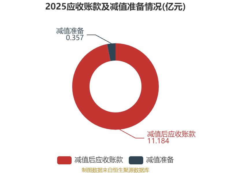 从应收账款账龄结构来看,截至2025年末,公司账龄在1年以内的应收账款余额为11.06亿元,较上年末增长3.27亿元,占应收账款总额比例为95.83%,较上年末下降2.04个百分点。
