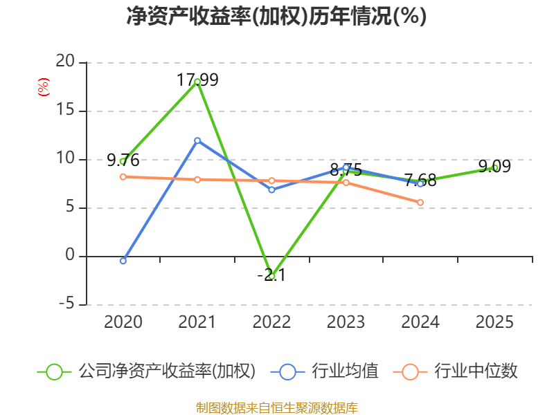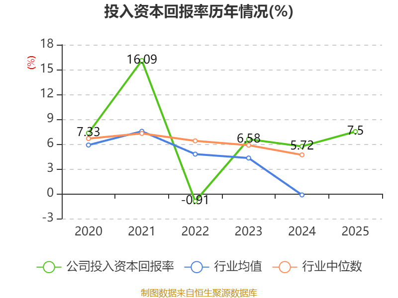 数据显示,2025年公司加权平均净资产收益率为9.09%,较上年同期上升1.41个百分点。公司2025年投入资本回报率为7.5%,较上年同期上升1.78个百分点。