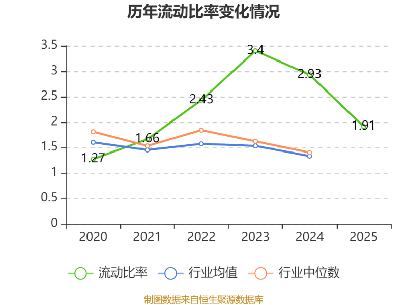 2025年,公司流动比率为1.91,速动比率为1.47。