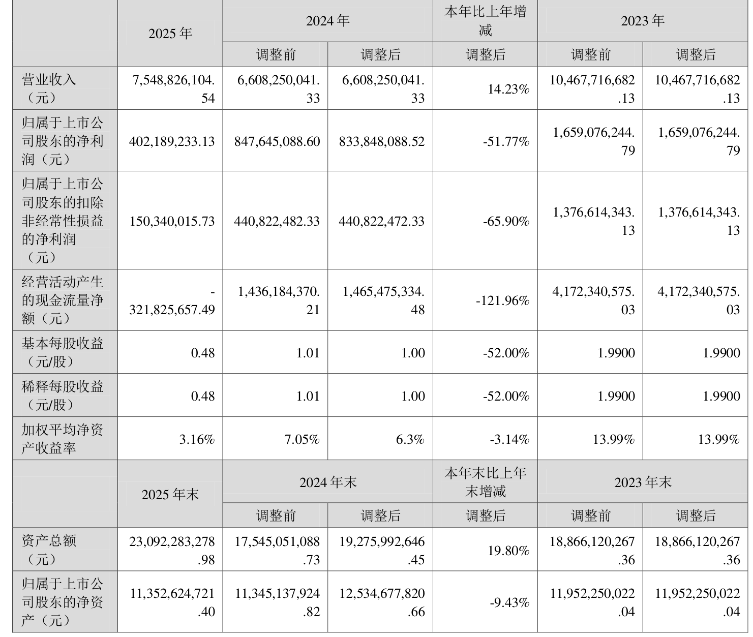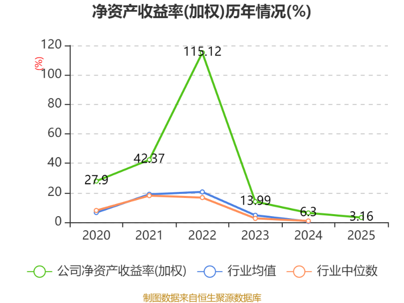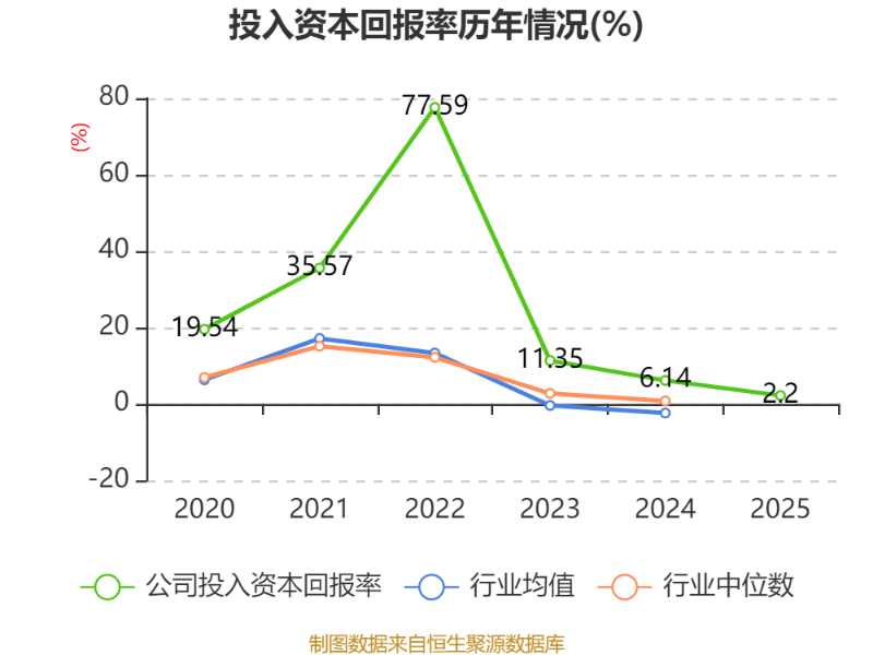 数据显示,2025年公司加权平均净资产收益率为3.16%,较上年同期下降3.14个百分点。公司2025年投入资本回报率为2.2%,较上年同期下降3.94个百分点。