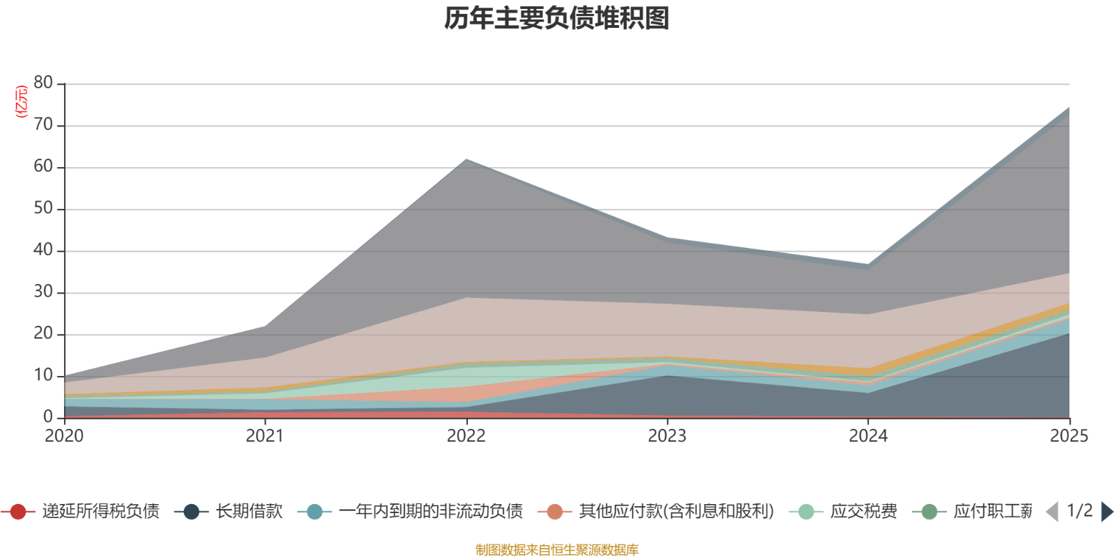 负债重大变化方面,截至2025年末,公司短期借款较上年末增加260.06%,占公司总资产比重上升10.95个百分点;长期借款较上年末增加258.35%,占公司总资产比重上升5.79个百分点;应付票据及应付账款较上年末减少44.58%,占公司总资产比重下降3.6个百分点;一年内到期的非流动负债较上年末增加81.02%,占公司总资产比重上升0.5个百分点。