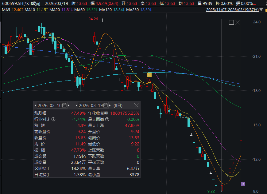 存在退市风险的*ST熊猫,却连续8个交易日涨停。