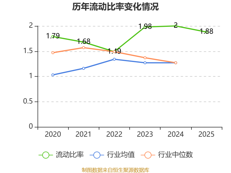 2025年,公司流动比率为1.88,速动比率为1.15。