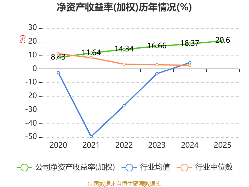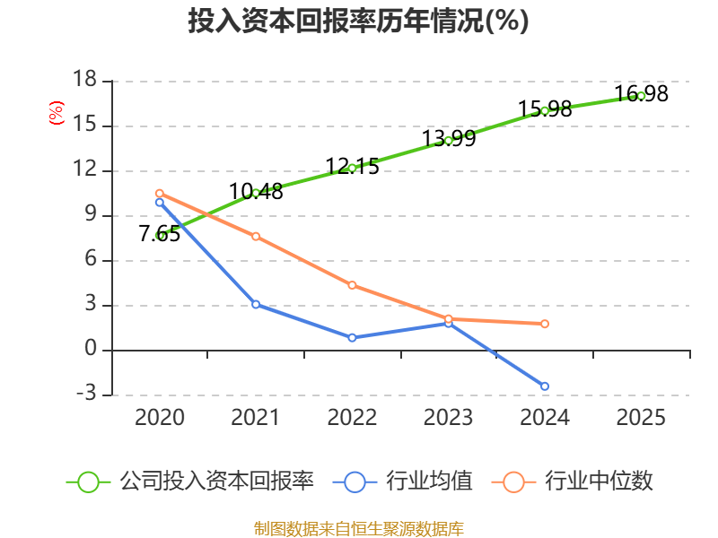 数据显示,2025年公司加权平均净资产收益率为20.6%,较上年同期上升2.23个百分点。公司2025年投入资本回报率为16.98%,较上年同期上升1个百分点。