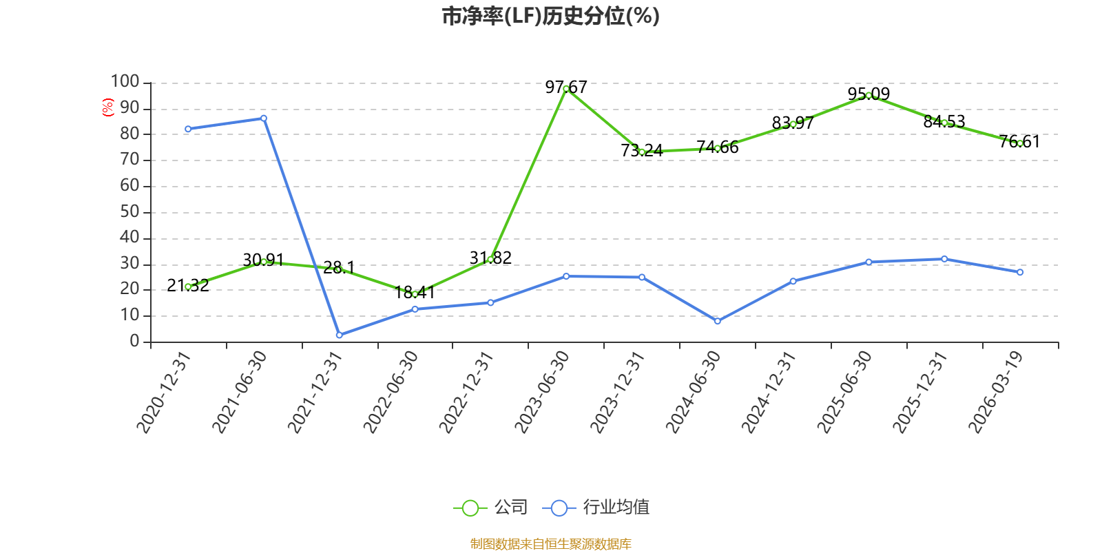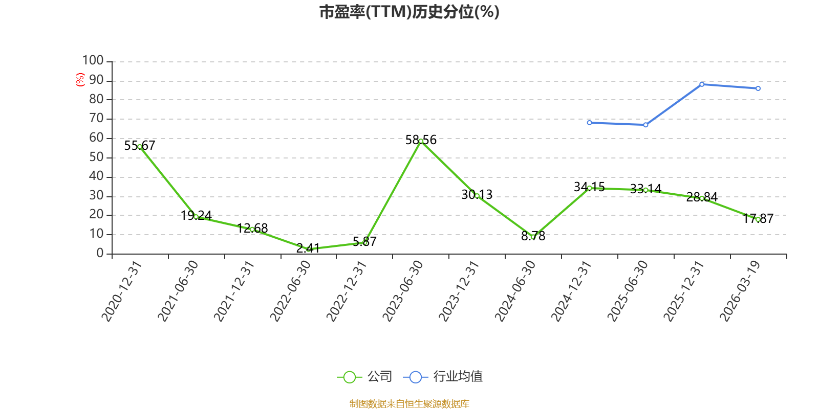 市盈率、市净率为负时,不显示当期分位数,会导致折线图中断。