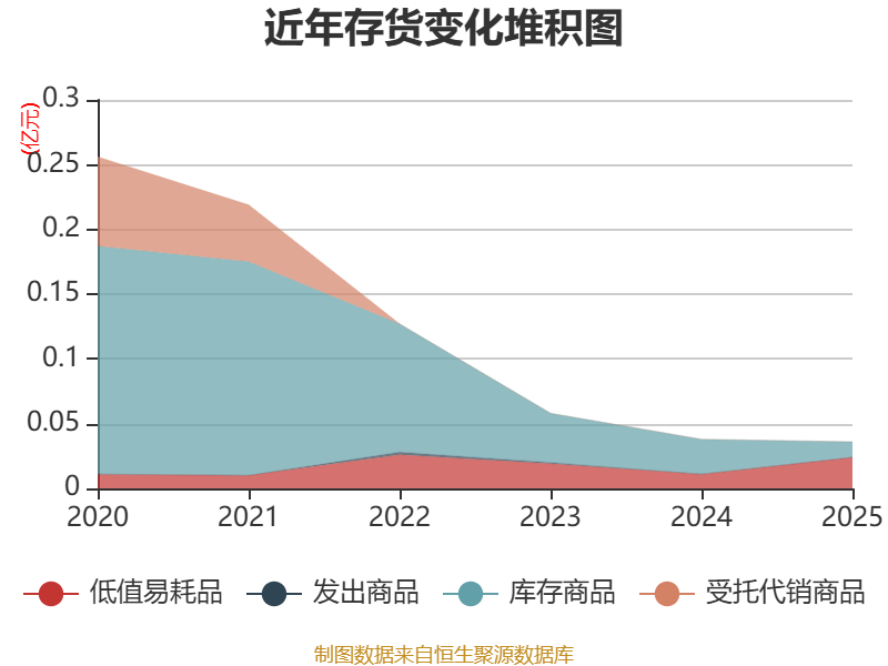 从存货变动来看,截至2025年末,公司存货账面价值为351.41万元,占净资产的0.13%,较上年末减少30.88万元。其中,存货跌价准备为62.46万元,计提比例为15.09%。