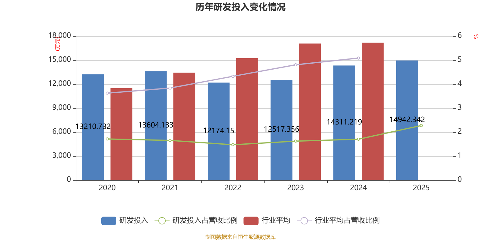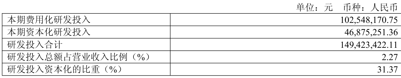 2025年全年,公司研发投入金额为1.49亿元,同比增长4.41%;研发投入占营业收入比例为2.27%,相比上年同期上升0.57个百分点。此外,公司全年研发投入资本化率为31.37%。