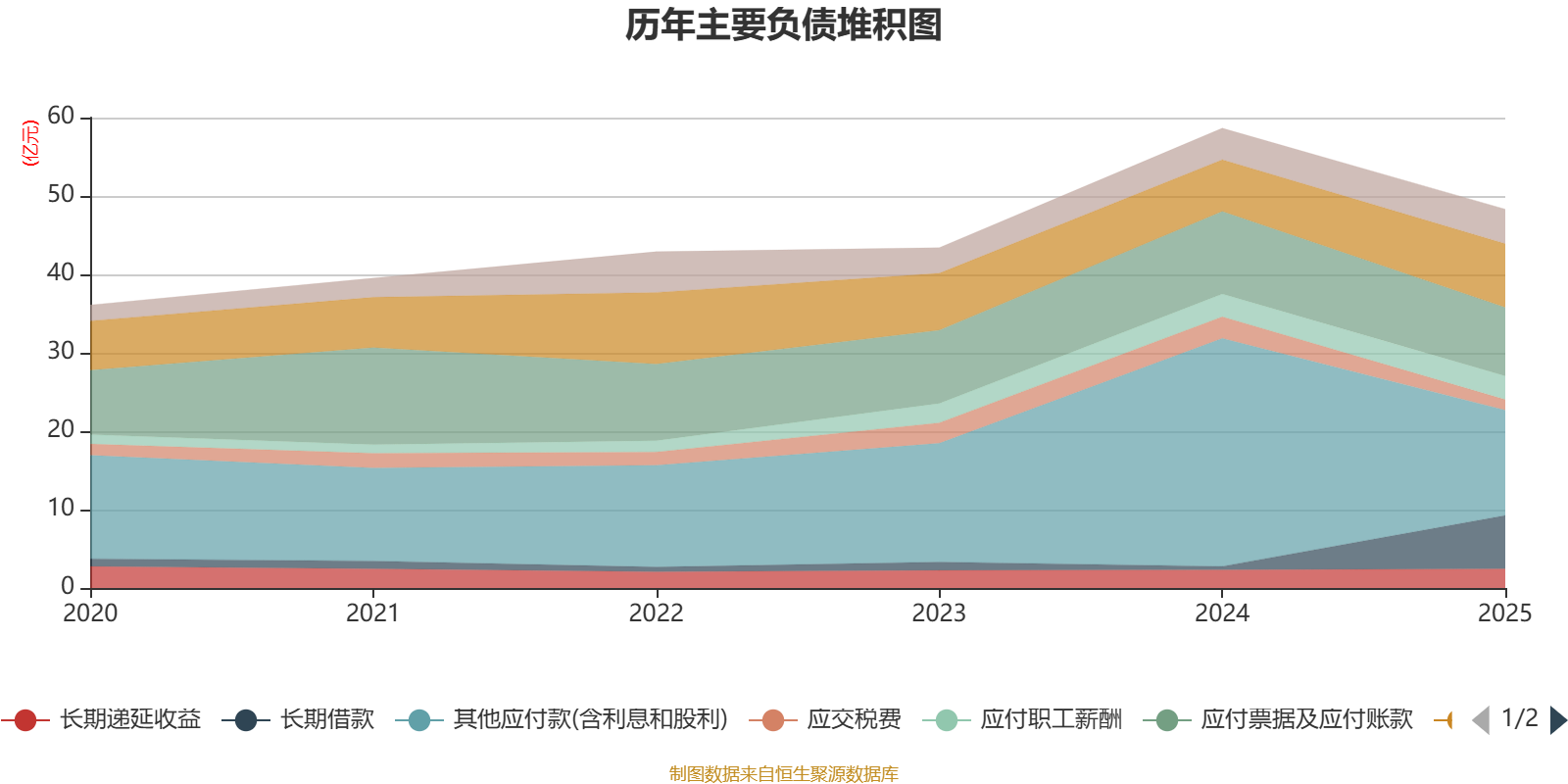 负债重大变化方面,截至2025年末,公司其他应付款(含利息和股利)较上年末减少53.81%,占公司总资产比重下降11.65个百分点;长期借款较上年末增加1383.6%,占公司总资产比重上升5.44个百分点;短期借款较上年末增加23.6%,占公司总资产比重上升1.69个百分点;应交税费较上年末减少51.41%,占公司总资产比重下降1.05个百分点。