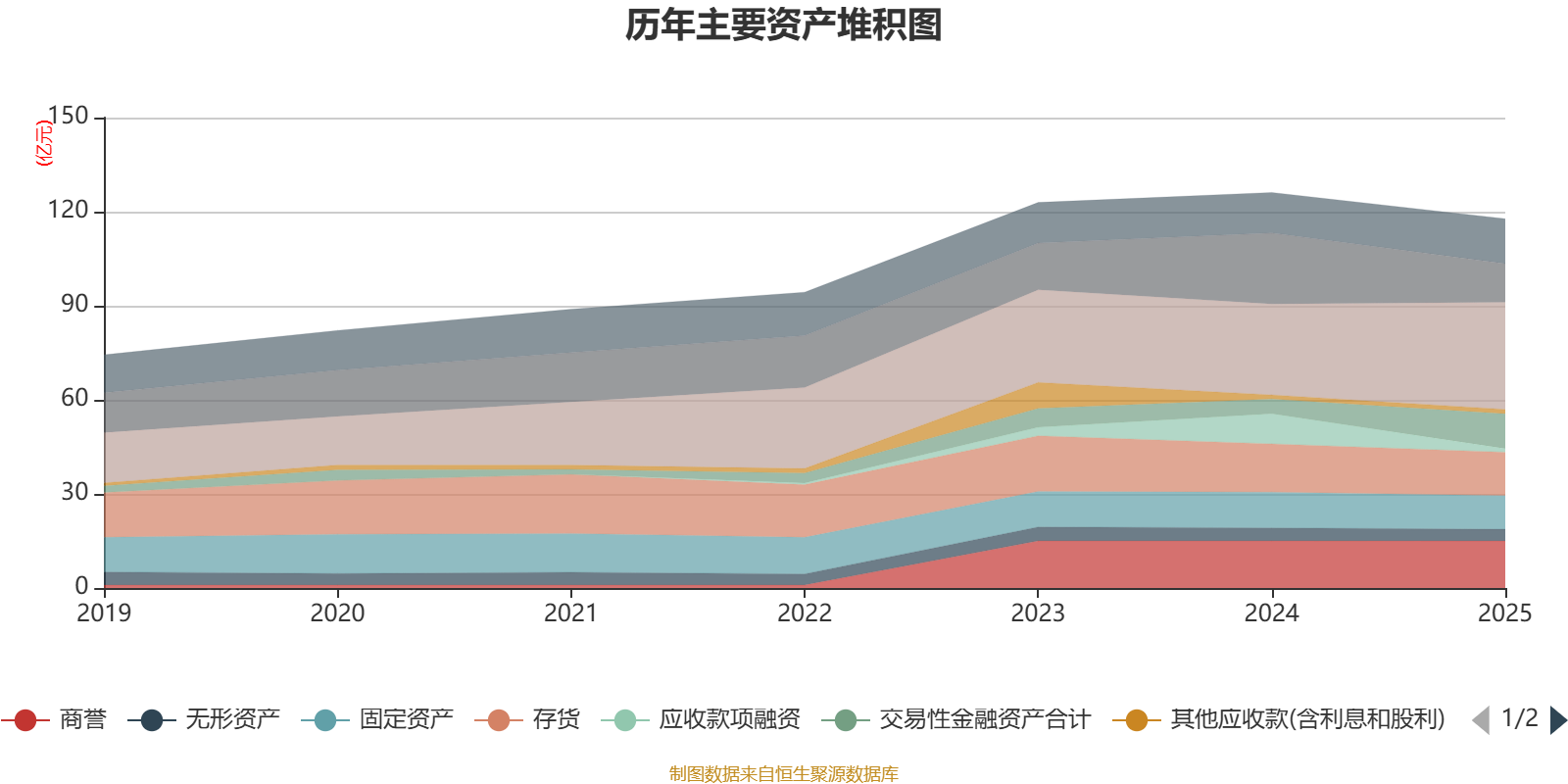 资产重大变化方面,截至2025年末,公司货币资金较上年末减少45.51%,占公司总资产比重下降7.48个百分点;应收款项融资较上年末减少88.38%,占公司总资产比重下降6.65个百分点;应收票据及应收账款较上年末增加17.94%,占公司总资产比重上升6.05个百分点;交易性金融资产合计较上年末增加135.32%,占公司总资产比重上升5.68个百分点。