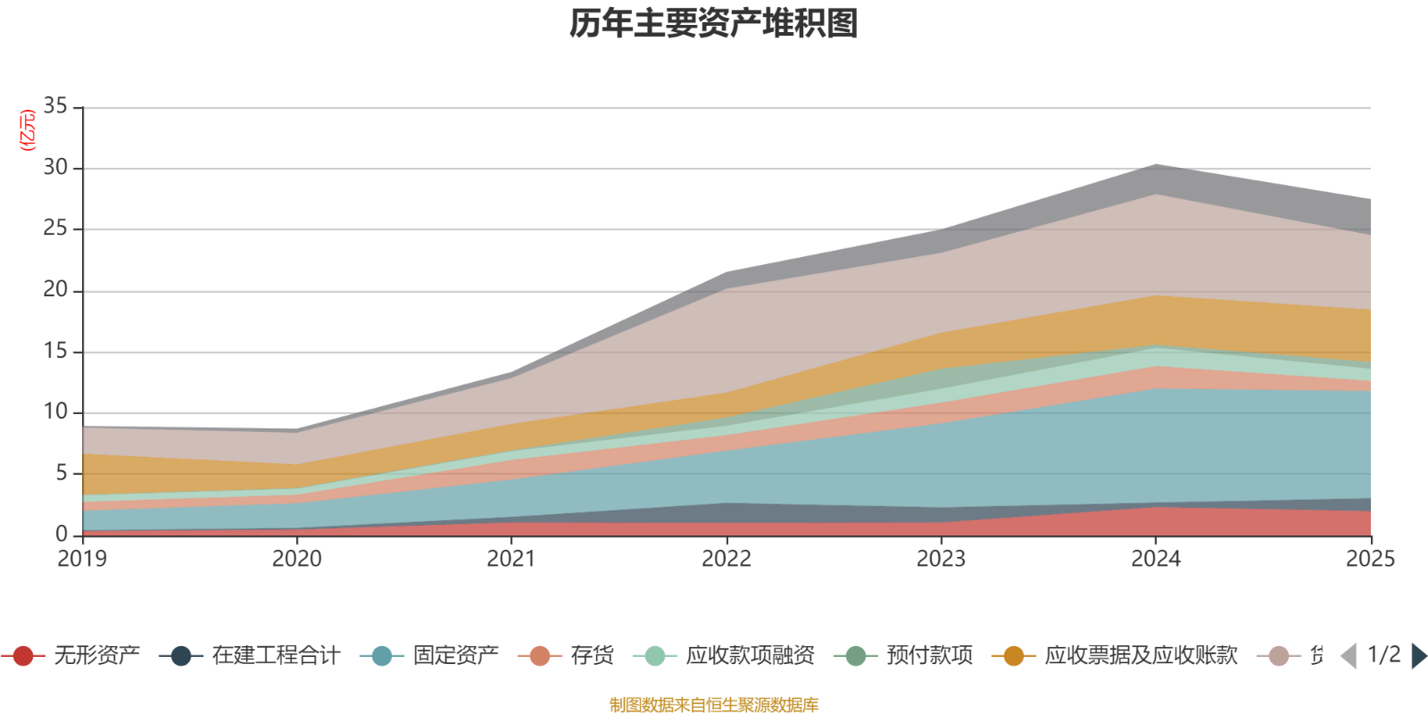资产重大变化方面,截至2025年末,公司货币资金较上年末减少26.44%,占公司总资产比重下降5.11个百分点;存货较上年末减少54.34%,占公司总资产比重下降2.99个百分点;在建工程合计较上年末增加182.7%,占公司总资产比重上升2.59个百分点;应收票据及应收账款较上年末增加6.06%,占公司总资产比重上升2.28个百分点。