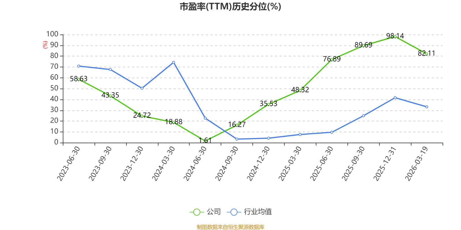 市盈率、市净率为负时,不显示当期分位数,会导致折线图中断。