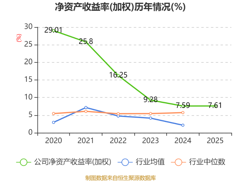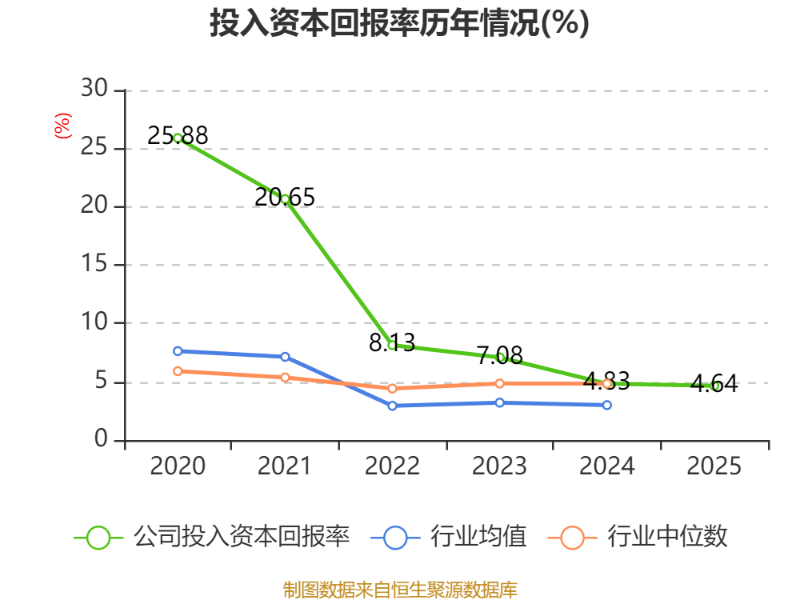 数据显示,2025年公司加权平均净资产收益率为7.61%,较上年同期上升0.02个百分点。公司2025年投入资本回报率为4.64%,较上年同期下降0.19个百分点。