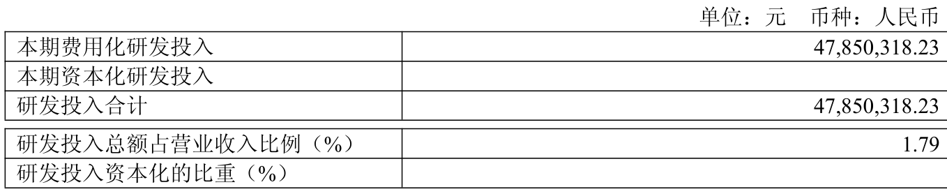 2025年全年,公司研发投入金额为4785.03万元,同比增长9%;研发投入占营业收入比例为1.79%,相比上年同期上升0.11个百分点。此外,公司全年研发投入资本化率为0%。