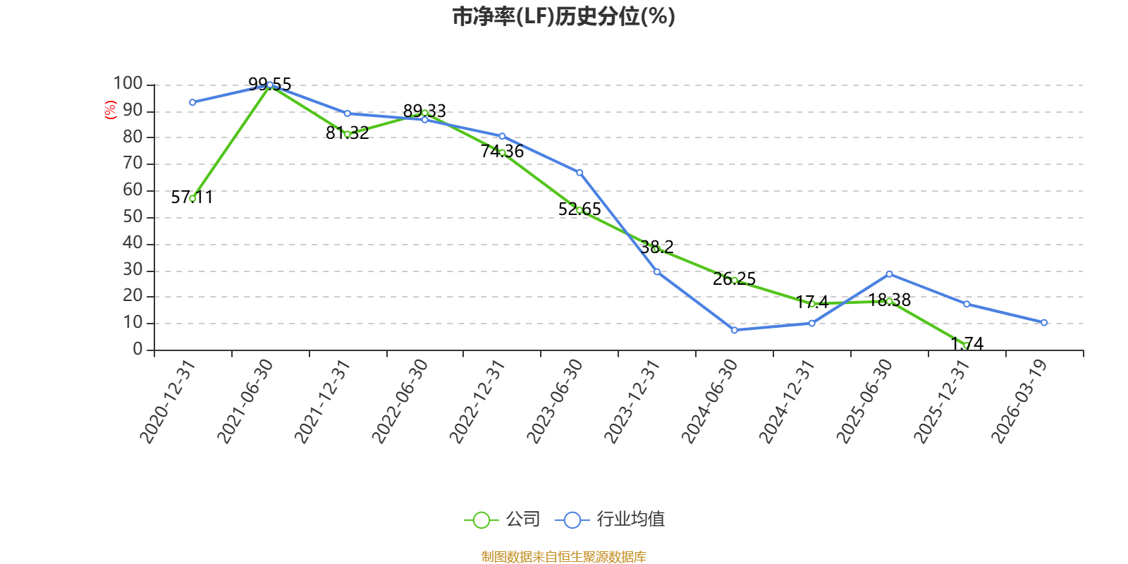 市盈率、市净率为负时,不显示当期分位数,会导致折线图中断。