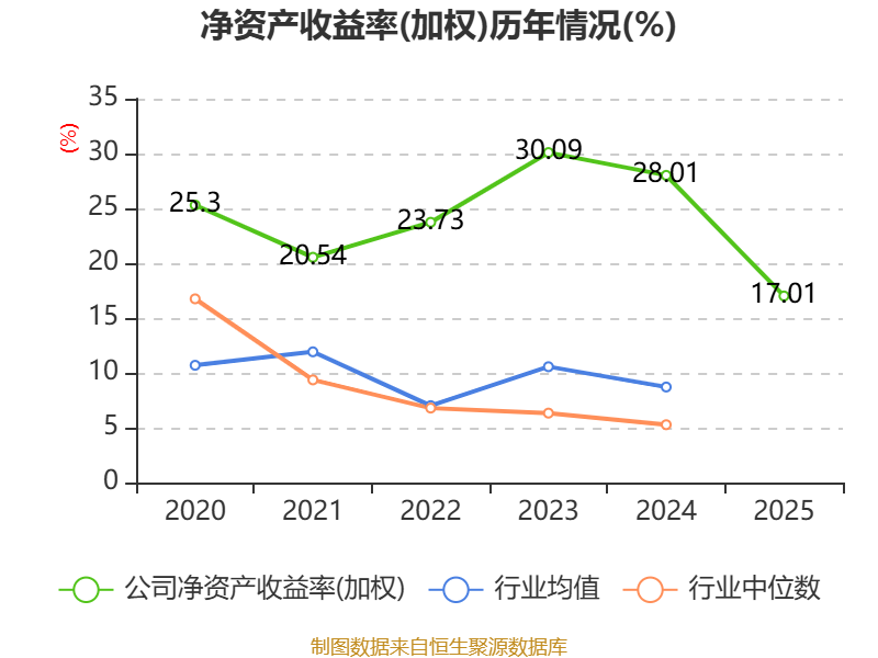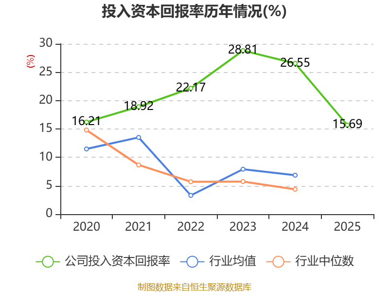 数据显示,2025年公司加权平均净资产收益率为17.01%,较上年同期下降11个百分点。公司2025年投入资本回报率为15.69%,较上年同期下降10.86个百分点。
