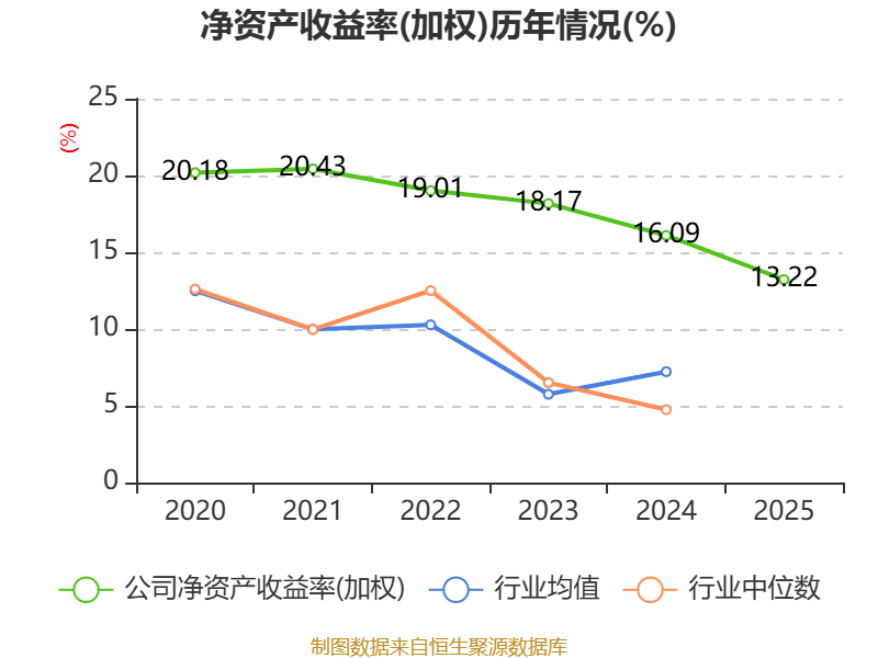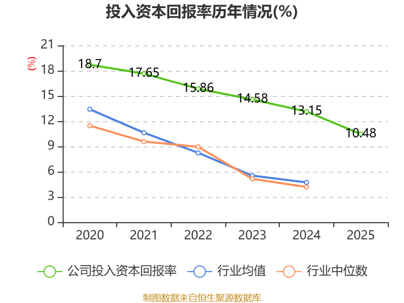 数据显示,2025年公司加权平均净资产收益率为13.22%,较上年同期下降2.87个百分点。公司2025年投入资本回报率为10.48%,较上年同期下降2.67个百分点。