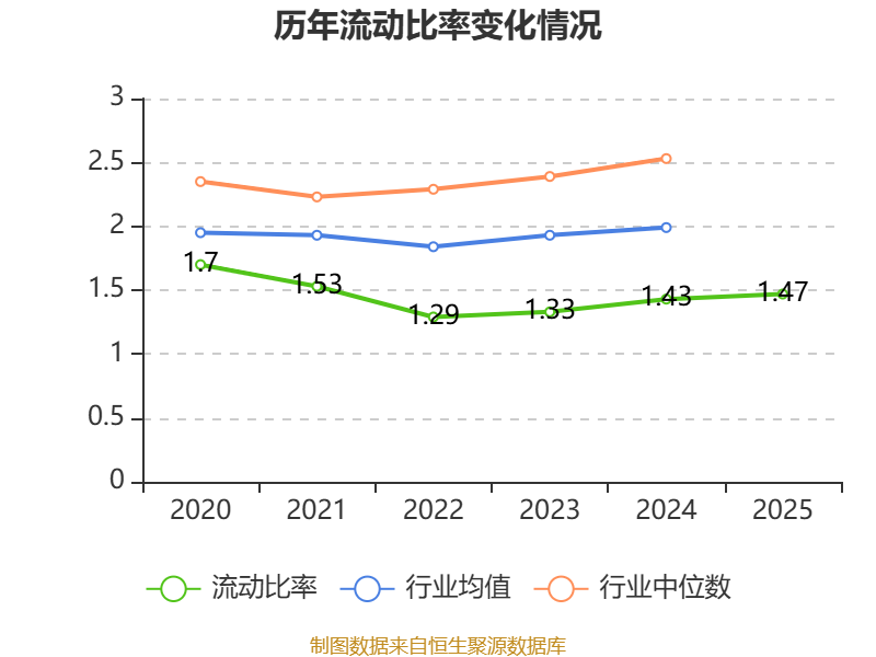 2025年,公司流动比率为1.47,速动比率为1.17。