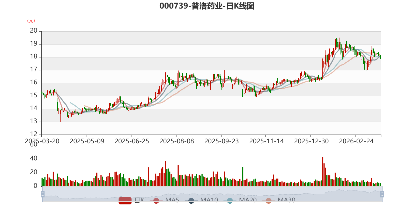 中证智能财讯普洛药业(000739)3月20日披露2025年年度报告。2025年,公司实现营业总收入97.84亿元,同比下降18.62%;归母净利润8.91亿元,同比下降13.62%;扣非净利润7.69亿元,同比下降21.86%;经营活动产生的现金流量净额为12.2亿元,同比增长0.95%;报告期内,普洛药业基本每股收益为0.7723元,加权平均净资产收益率为13.22%。公司2025年度分配预案为:拟向全体股东每10股派现2.38元(含税)。