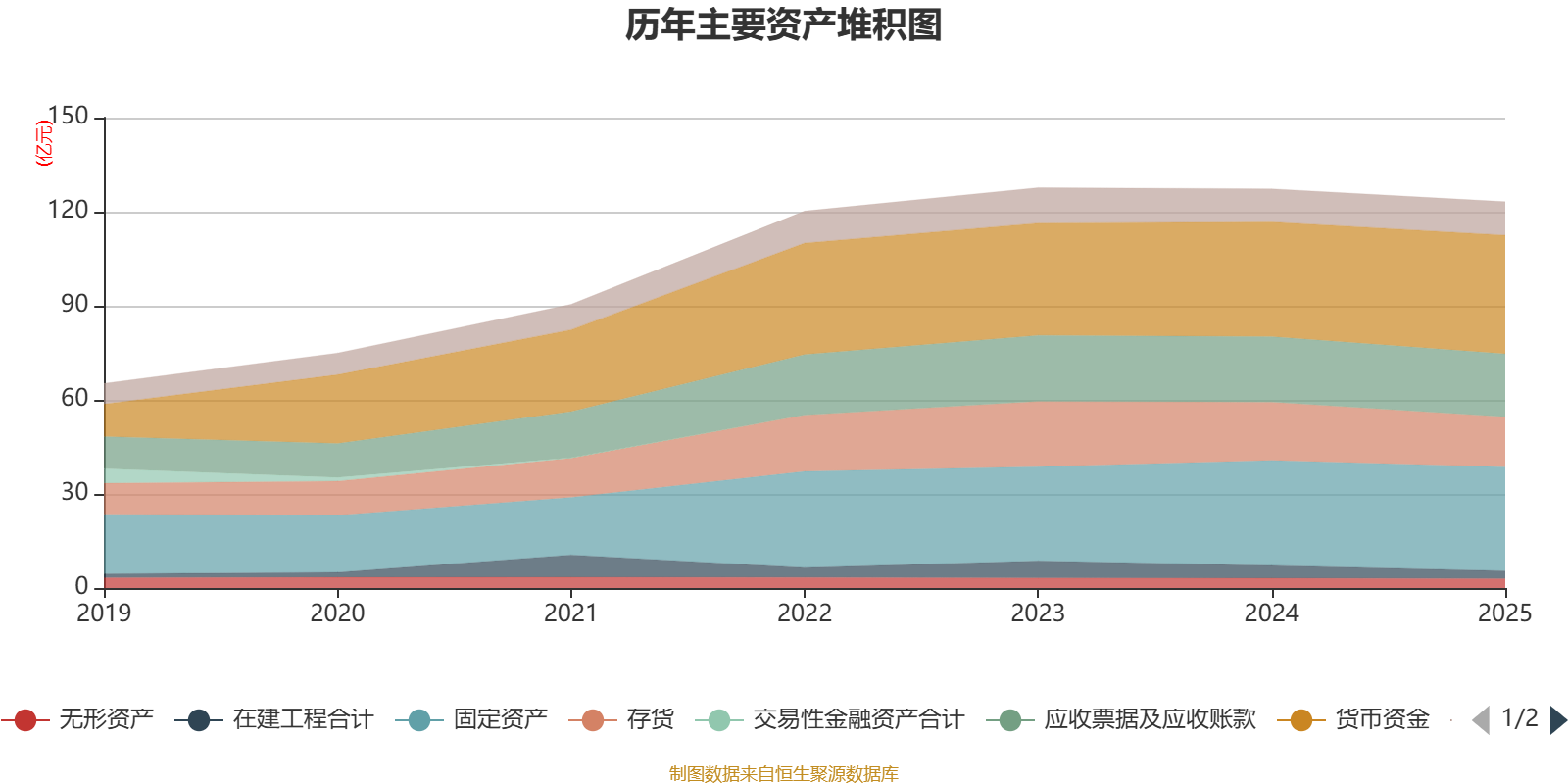 资产重大变化方面,截至2025年末,公司货币资金较上年末增加3.41%,占公司总资产比重上升1.97个百分点;存货较上年末减少13.88%,占公司总资产比重下降1.61个百分点;在建工程合计较上年末减少40.09%,占公司总资产比重下降1.22个百分点;预付款项较上年末减少53.5%,占公司总资产比重下降0.93个百分点。