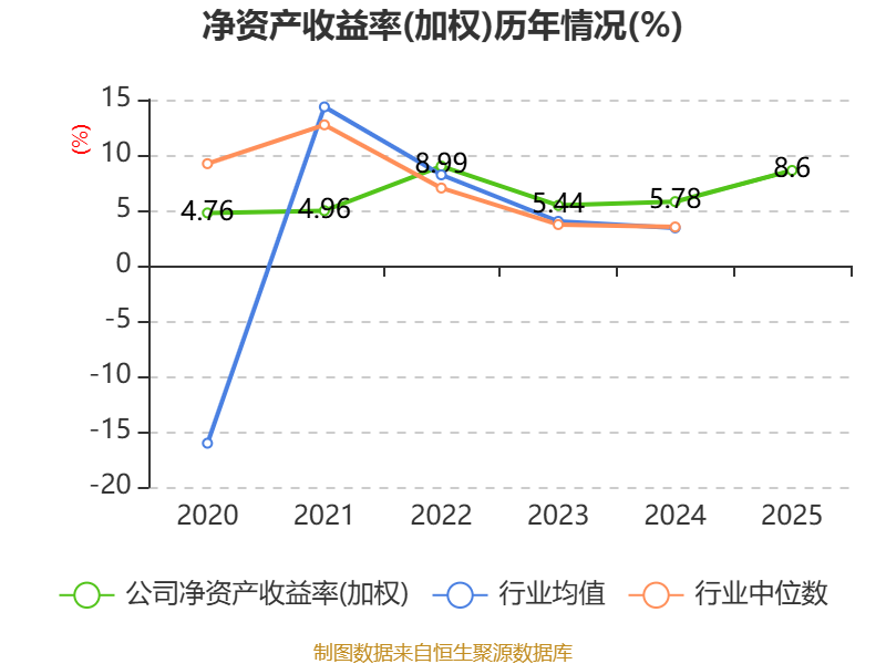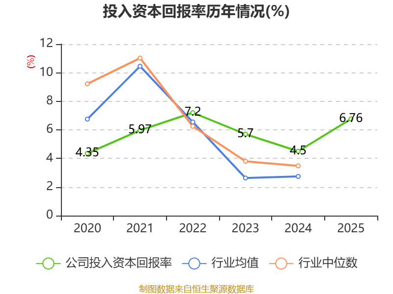数据显示,2025年公司加权平均净资产收益率为8.6%,较上年同期上升2.82个百分点。公司2025年投入资本回报率为6.76%,较上年同期上升2.26个百分点。
