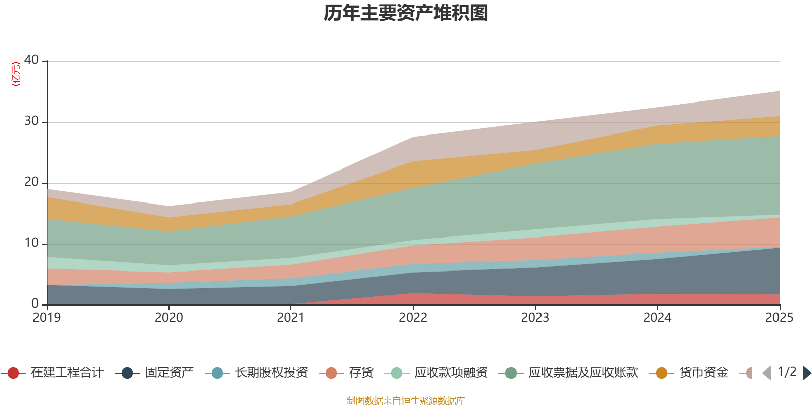 资产重大变化方面,截至2025年末,公司固定资产较上年末增加34.83%,占公司总资产比重上升4.31个百分点;长期股权投资较上年末减少85.96%,占公司总资产比重下降2.87个百分点;应收款项融资较上年末减少63.25%,占公司总资产比重下降2.52个百分点;交易性金融资产合计占公司总资产的2%,上年末为0。