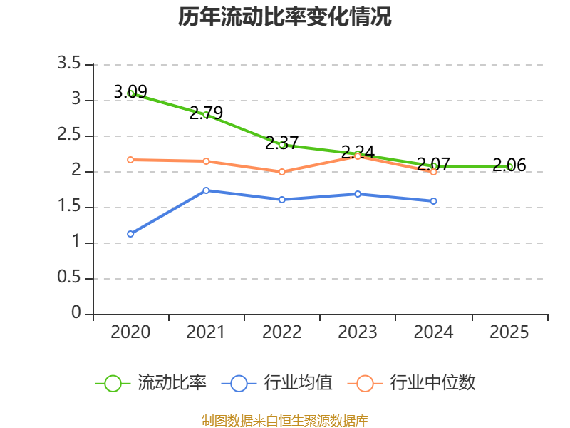 2025年,公司流动比率为2.06,速动比率为1.62。