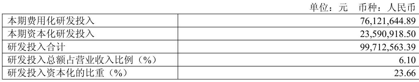 2025年全年,公司研发投入金额为9971.26万元,同比增长8.65%;研发投入占营业收入比例为6.1%,相比上年同期上升0.32个百分点。此外,公司全年研发投入资本化率为23.66%。