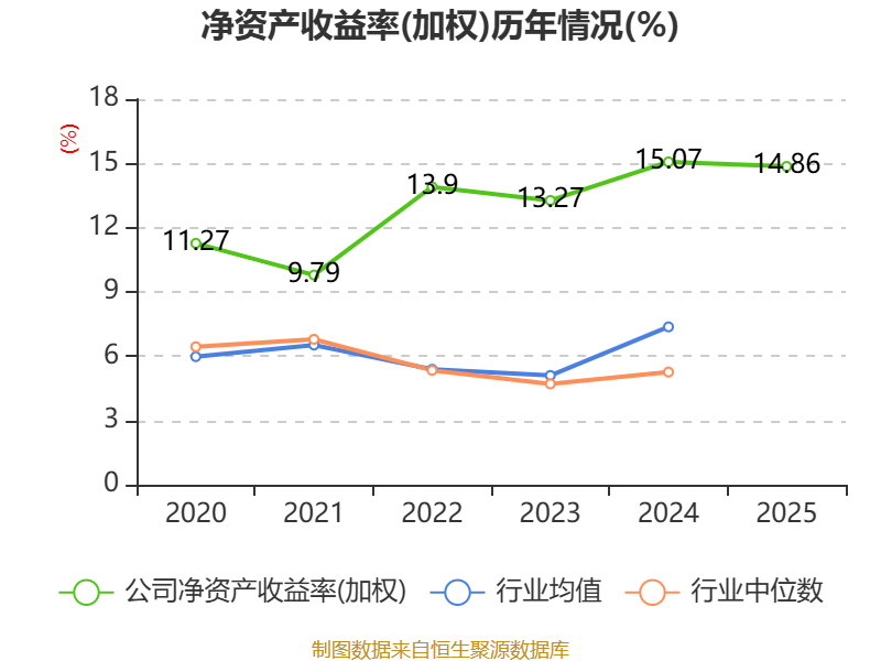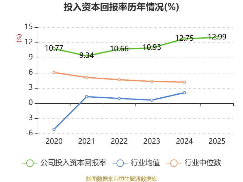 数据显示,2025年公司加权平均净资产收益率为14.86%,较上年同期下降0.21个百分点。公司2025年投入资本回报率为12.99%,较上年同期上升0.24个百分点。