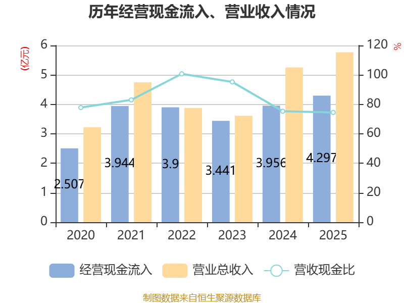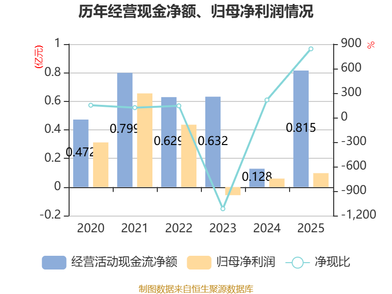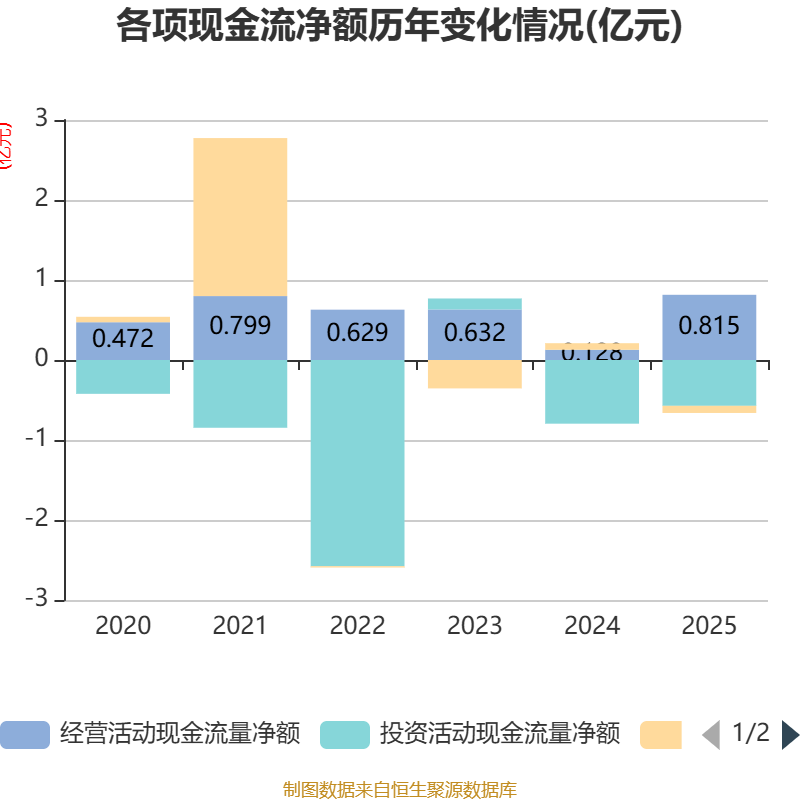 截至2025年,公司经营活动现金流净额为8154.11万元,同比增长537.48%;筹资活动现金流净额-887.03万元,同比减少1710.28万元;投资活动现金流净额-5733.26万元,上年同期为-7962.21万元。