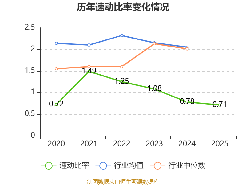 2025年,公司流动比率为1.22,速动比率为0.71。