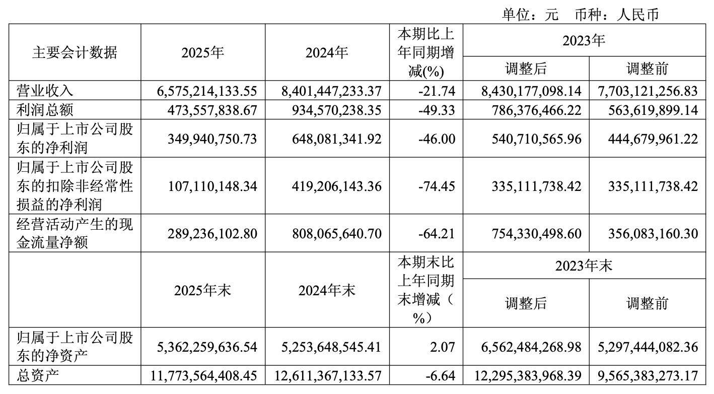 3月19日晚间,昆药集团(600422)发布2025年年报,2025年,公司实现营业总收入65.75亿元,同比下降21.74%;归母净利润3.5亿元,同比下降46.00%;扣非净利润1.07亿元,同比下降74.45%;经营活动产生的现金流量净额为2.89亿元,同比下降64.21%。