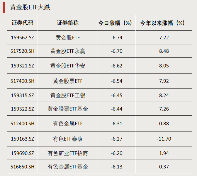 黄金ETF大跌