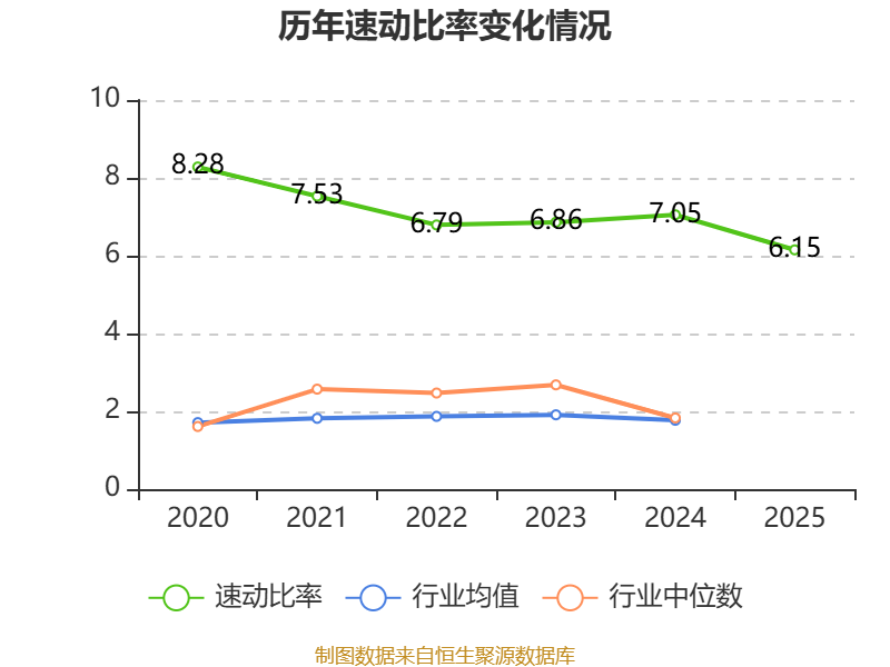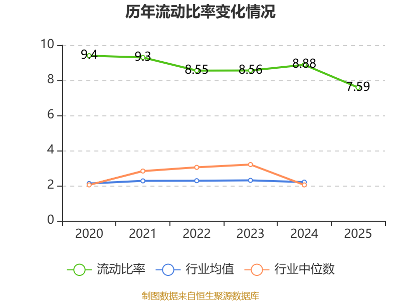 2025年,公司流动比率为7.59,速动比率为6.15。