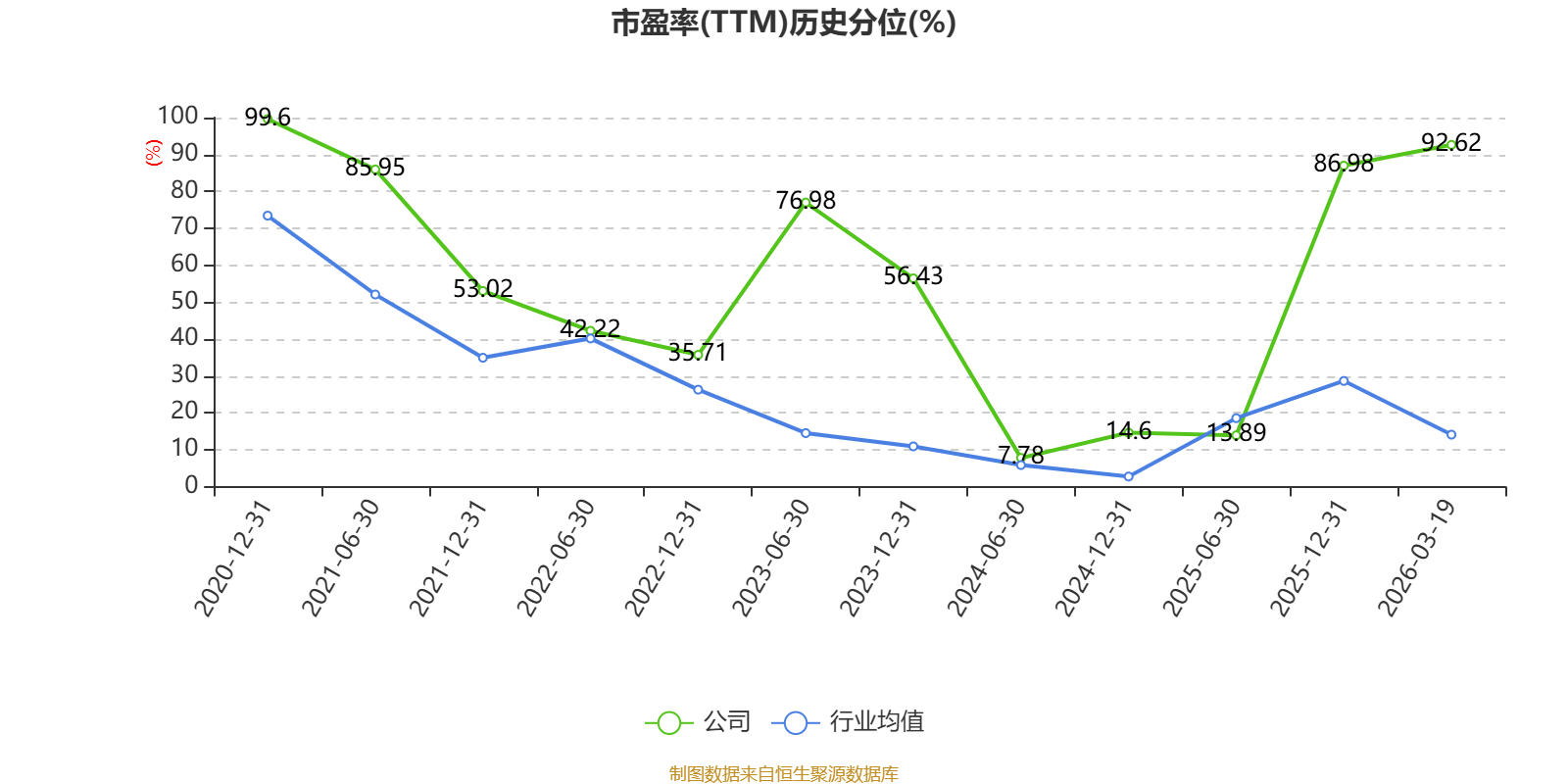 市盈率、市净率为负时,不显示当期分位数,会导致折线图中断。