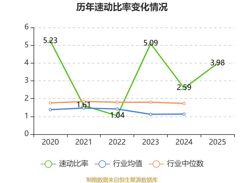 2025年,公司流动比率为5.34,速动比率为3.98。