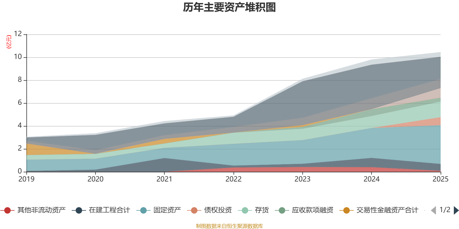 资产重大变化方面,截至2025年末,公司货币资金较上年末减少33.45%,占公司总资产比重下降11.22个百分点;其他应收款(含利息和股利)较上年末增加20875.61%,占公司总资产比重上升8.04个百分点;债权投资占公司总资产的6.72%,上年末为0;固定资产较上年末增加29.22%,占公司总资产比重上升5.66个百分点。