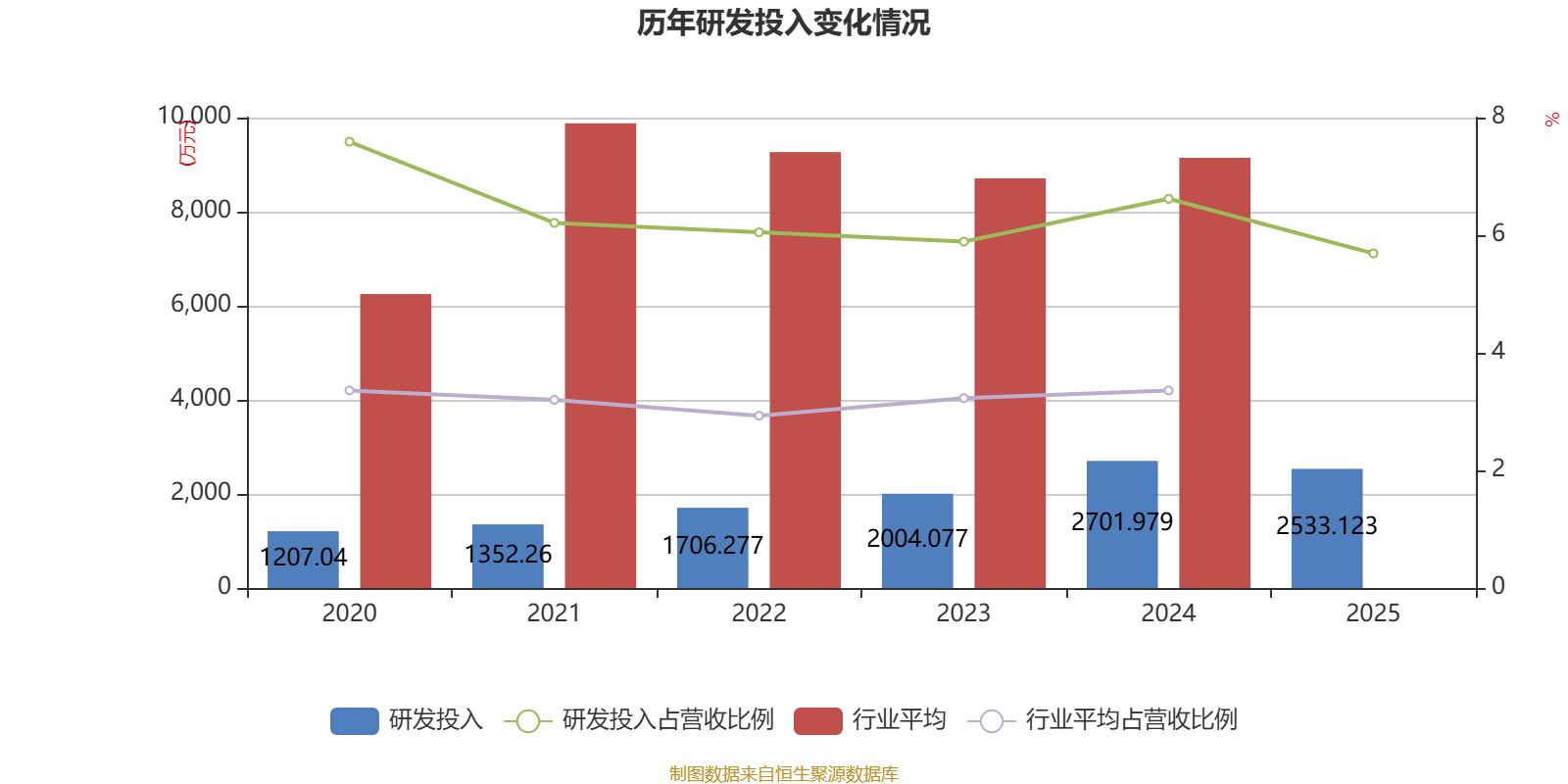 2025年全年,公司研发投入金额为2533.12万元,同比下降6.25%;研发投入占营业收入比例为5.69%,相比上年同期下降0.93个百分点。此外,公司全年研发投入资本化率为0。