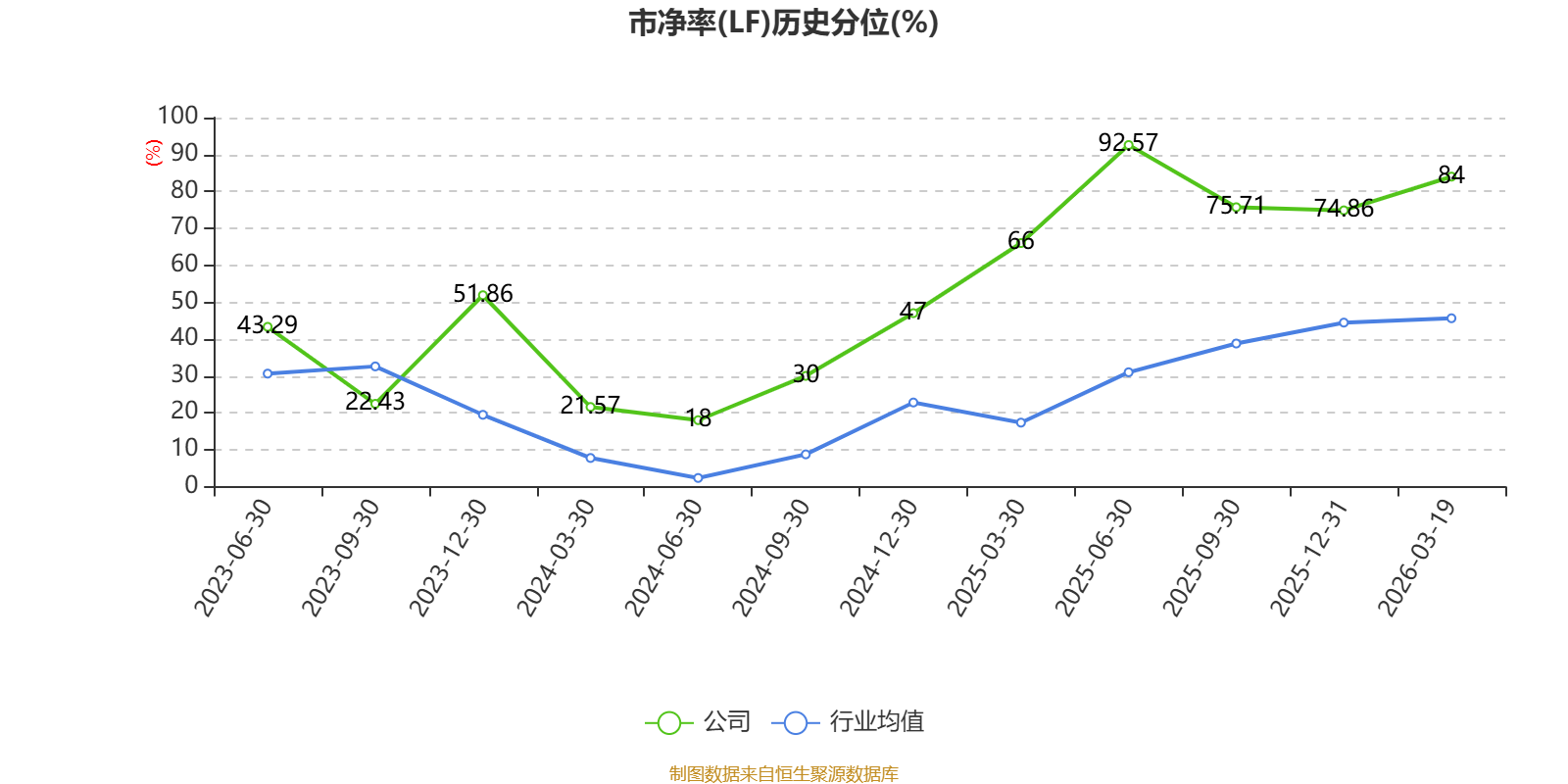市盈率、市净率为负时,不显示当期分位数,会导致折线图中断。