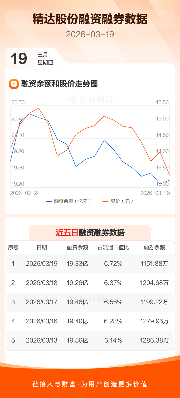 交易所最新数据显示,精达股份于2026年3月19日获融资买入1.05亿元,融资偿还9829.11万元,当日融资净买入625.96万元。目前,该股融资余额19.33亿,占流通市值比例为6.72%。