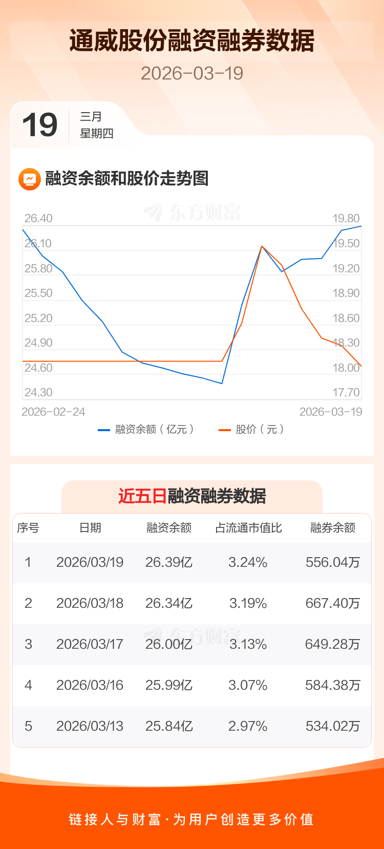 交易所最新数据显示,通威股份于2026年3月19日获融资买入7447.45万元,融资偿还6926.37万元,当日融资净买入521.08万元。目前,该股融资余额26.39亿,占流通市值比例为3.24%。