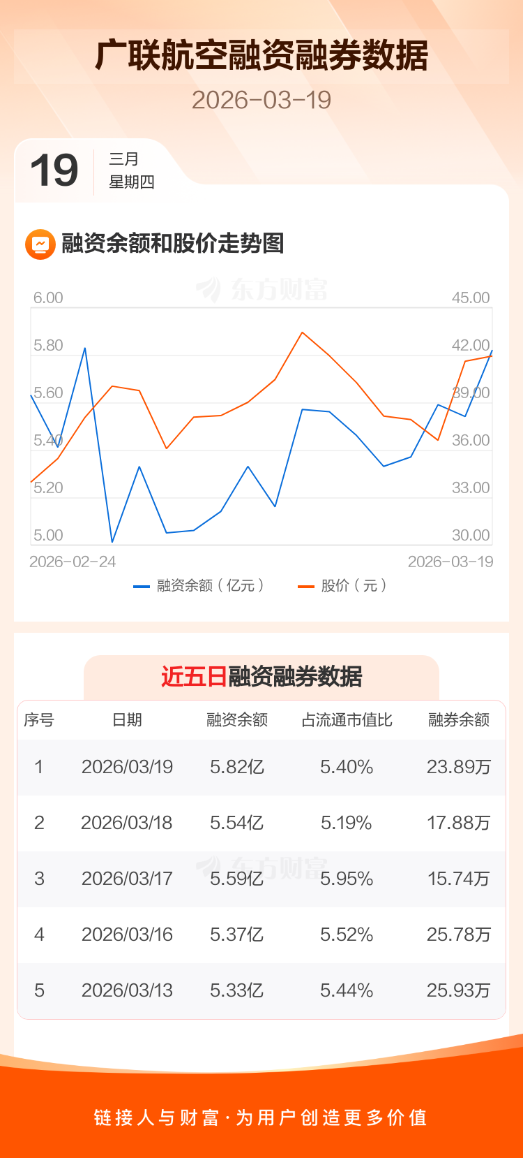 交易所最新数据显示,广联航空于2026年3月19日获融资买入1.79亿元,融资偿还1.52亿元,当日融资净买入2737.37万元。目前,该股融资余额5.82亿,占流通市值比例为5.40%。