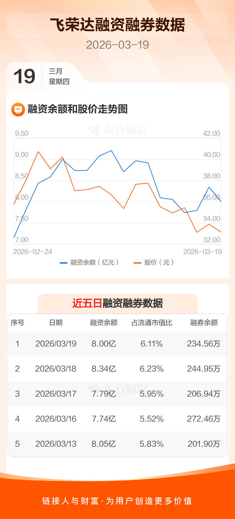交易所最新数据显示,飞荣达于2026年3月19日获融资买入5307.72万元,融资偿还8752.54万元,当日融资净偿还3444.82万元。目前,该股融资余额8.00亿,占流通市值比例为6.11%。