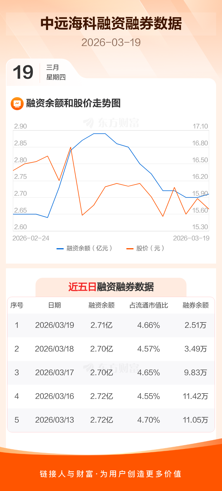 交易所最新数据显示,中远海科于2026年3月19日获融资买入526.78万元,融资偿还339.77万元,当日融资净买入187万元。目前,该股融资余额2.71亿,占流通市值比例为4.66%。