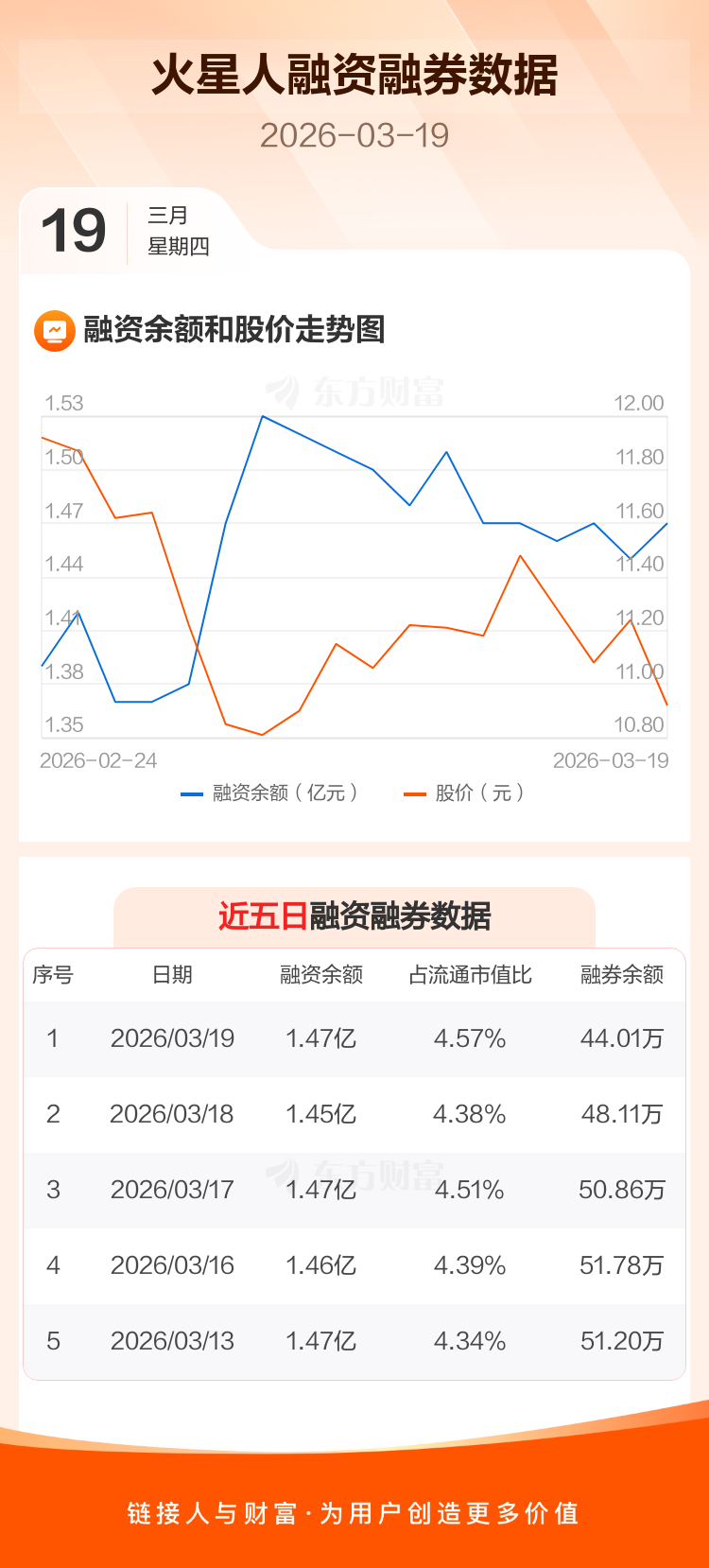 交易所最新数据显示,火星人于2026年3月19日获融资买入567.35万元,融资偿还367.22万元,当日融资净买入200.14万元。目前,该股融资余额1.47亿,占流通市值比例为4.57%。