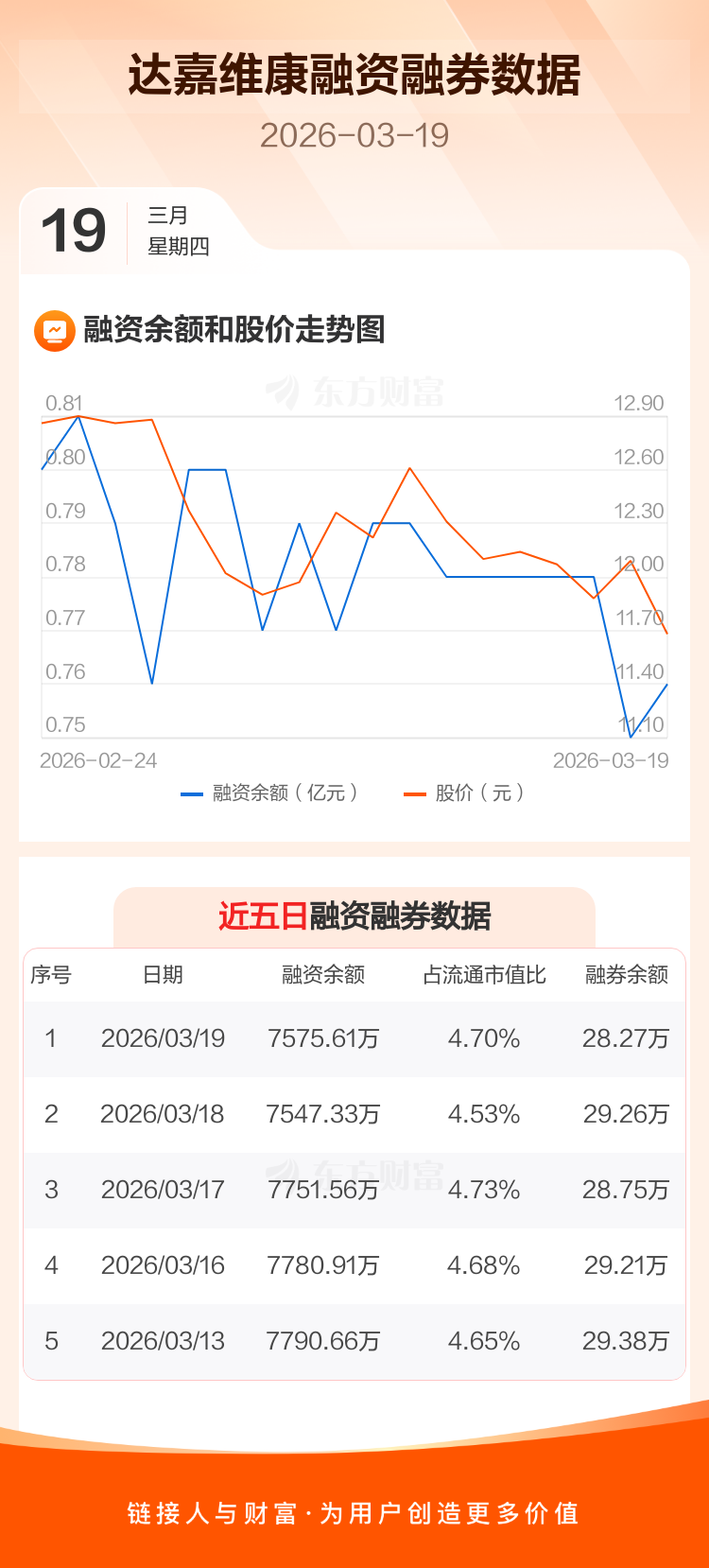 交易所最新数据显示,达嘉维康于2026年3月19日获融资买入366.18万元,融资偿还337.90万元,当日融资净买入28.28万元。目前,该股融资余额7575.61万,占流通市值比例为4.70%。