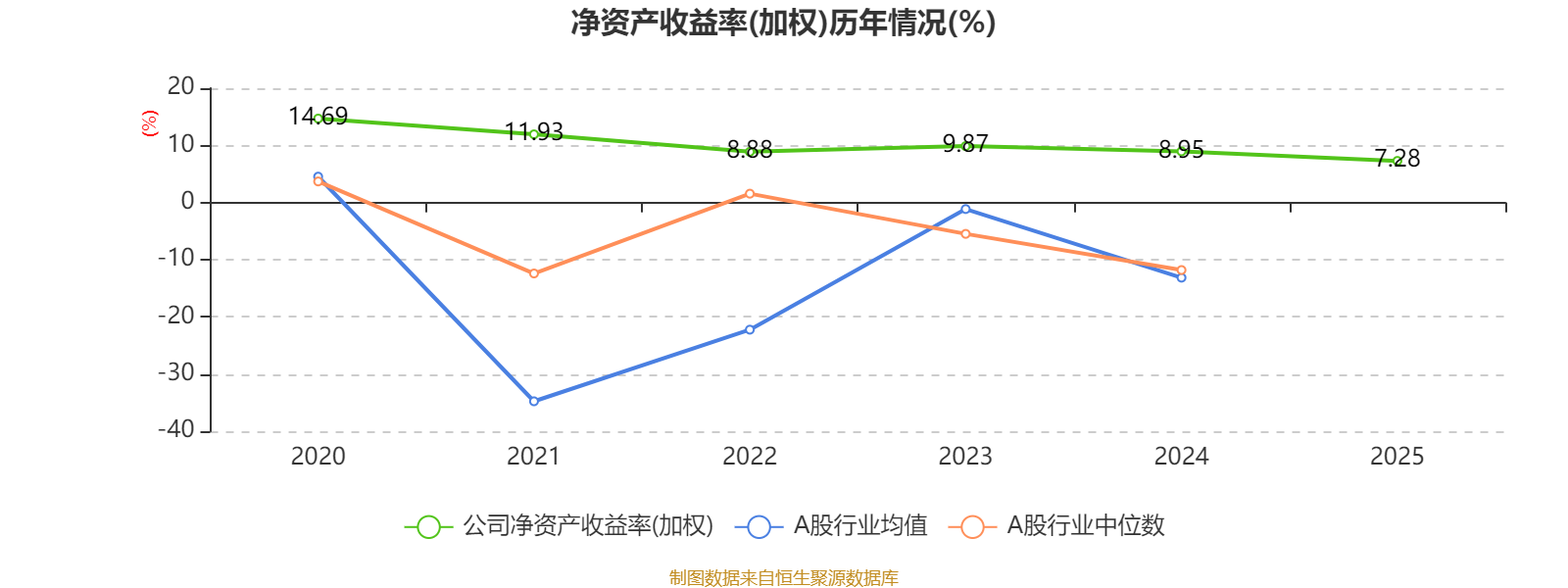 数据显示,2025年公司平均净资产收益率为7.28%,较上年同期下降1.67个百分点。