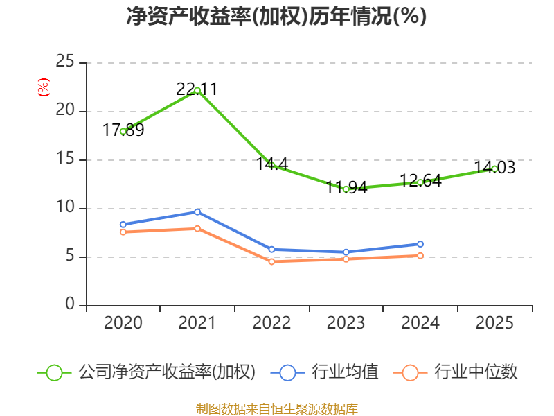 数据显示,2025年公司加权平均净资产收益率为14.03%,较上年同期上升1.39个百分点。公司2025年投入资本回报率为3.5%,较上年同期下降0.08个百分点。