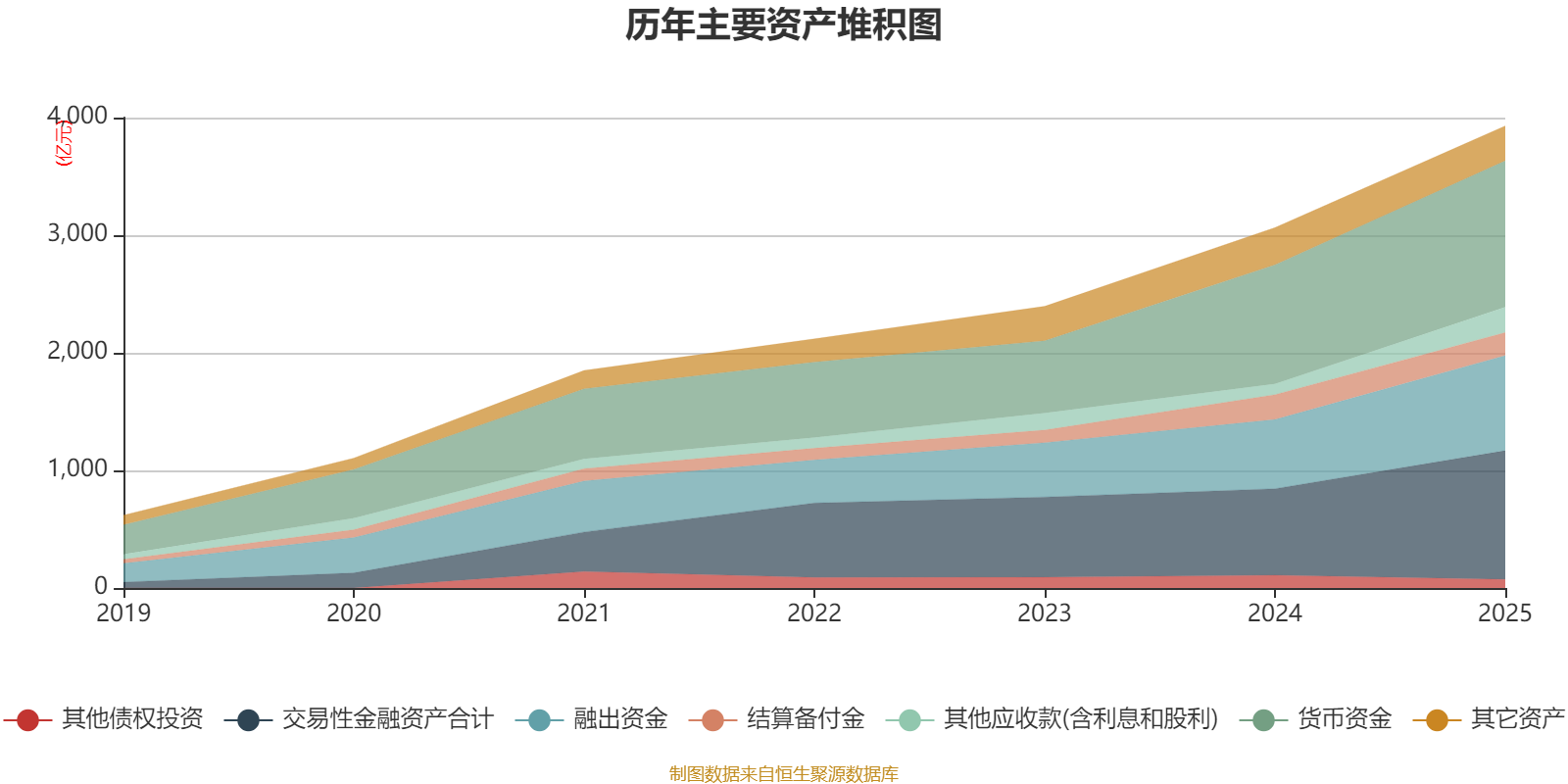 资产重大变化方面,截至2025年末,公司交易性金融资产合计较上年末增加48.89%,占公司总资产比重上升3.86个百分点;其他应收款(含利息和股利)较上年末增加136.19%,占公司总资产比重上升2.53个百分点;结算备付金较上年末减少7.56%,占公司总资产比重下降1.93个百分点;其他权益工具投资较上年末减少45.07%,占公司总资产比重下降1.84个百分点。