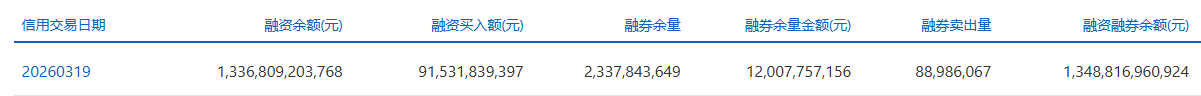 上证报中国证券网讯截至3月19日,上交所融资余额报13368.09亿元,较前一交易日减少10.4亿元;深交所融资余额报12870.26亿元,较前一交易日减少32.48亿元;两市合计26238.35亿元,较前一交易日减少42.88亿元。