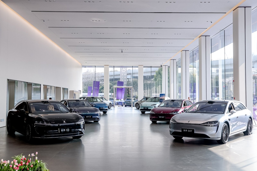 展车区可容纳26台展车,鸿蒙智行旗下问界、尊界、享界、智界、尚界全系车型齐聚一堂,消费者可一站式体验各款车型并预约试驾,享受沉浸式、全品类的看车选车体验。